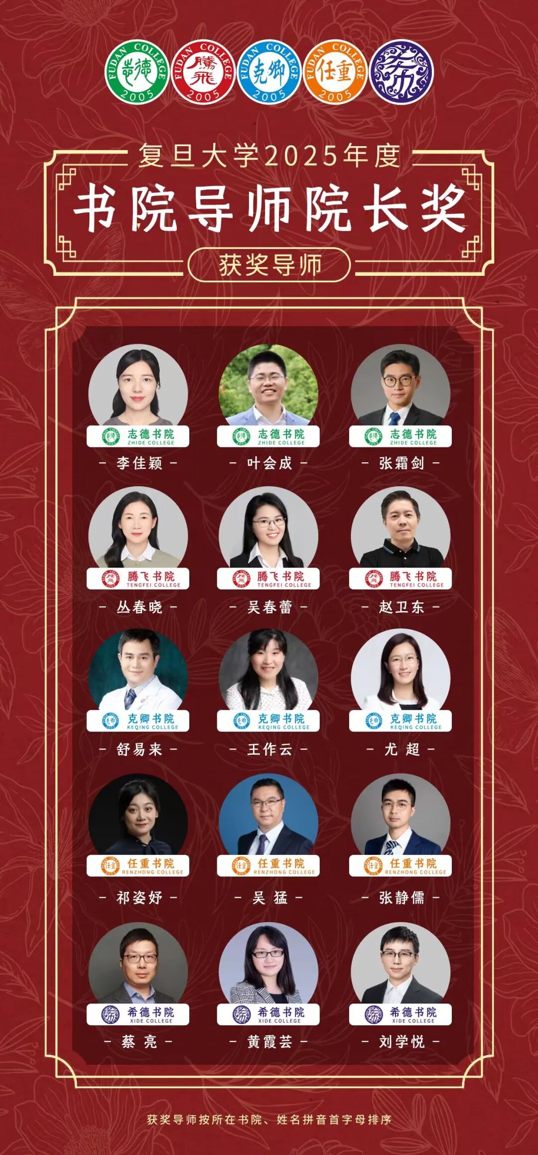 复旦大学2025年度书院导师院长奖获奖导师名单