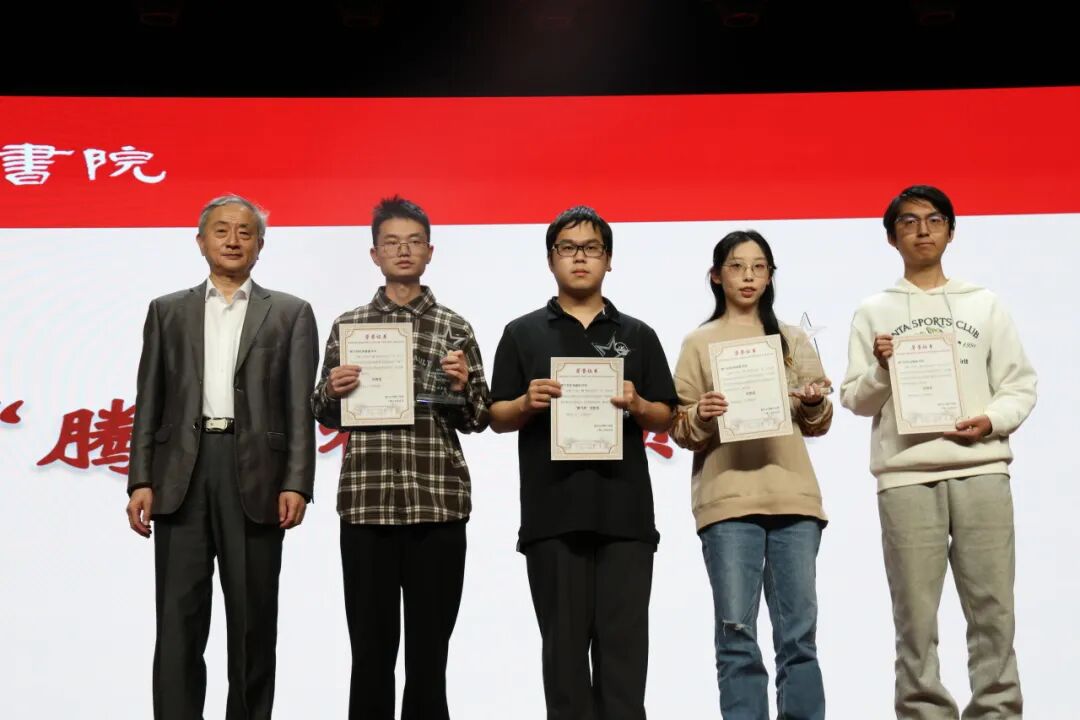 院长宣读“腾飞杯”科创大赛获奖名单,并亲自为他们颁奖,赞赏腾飞学子在科研实践中展现的团队凝聚力和创新活力,并希望他们在科技强国的道路上砥砺前行,贡献智慧。