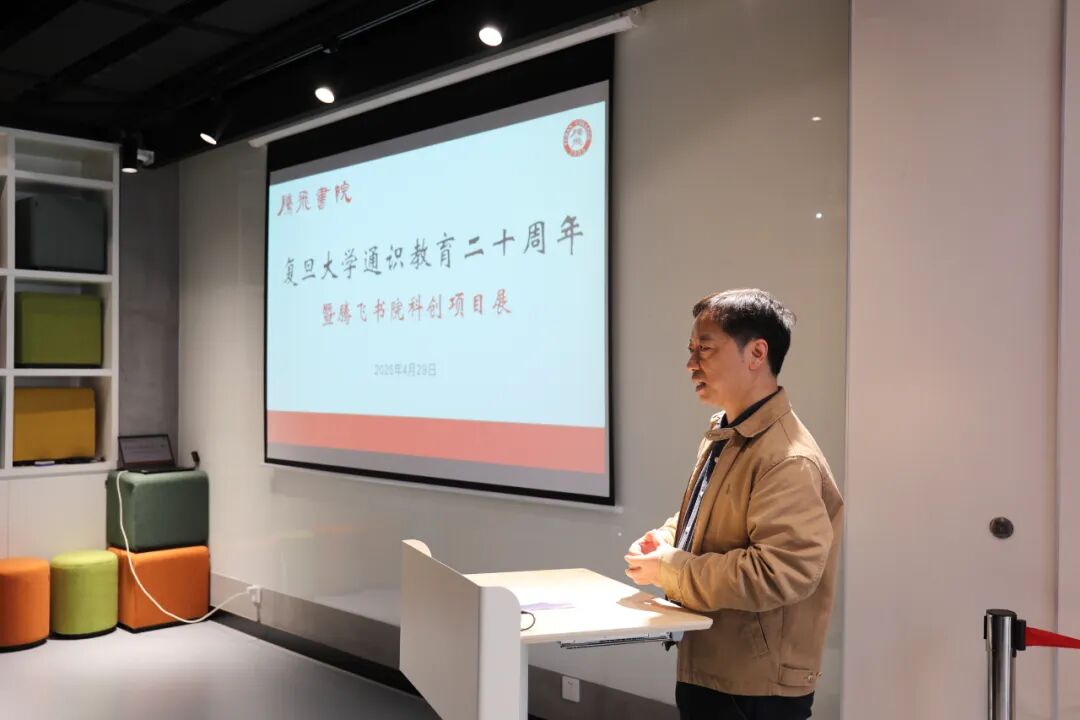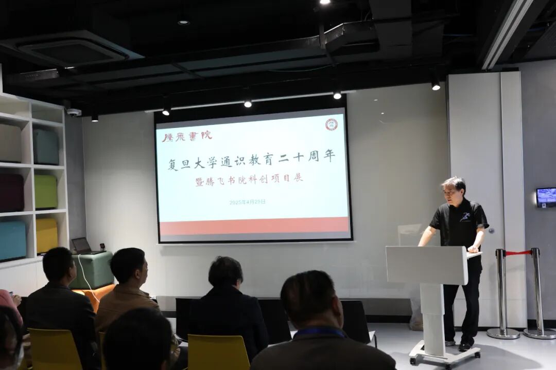 “腾飞科创计划”由腾飞书院学生拓展部承办,是腾飞书院特色活动之一。“腾飞科创计划”贯穿学生本科阶段三年,旨在结合书院学生工程技术学科专业背景,利用书院平台,依托各院系教学研究资源,为学生创造更多的学术体验及与导师深入交流的机会,培养学生的学术热情、科研能力和创新精神。恰逢复旦大学通识教育二十周年之际,腾飞书院在邯郸校区元创中心一楼大厅举办了腾飞科创优秀海报展,欢迎老师同学前往参观。戴开宇老师、赵卫东老师、李银胜老师分别在会上分享了自己指导腾飞科创项目的心得体会,引导同学们在科研创新的道路上不断突破自我。